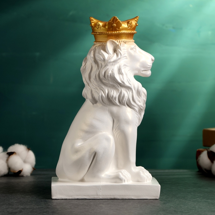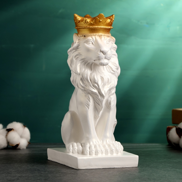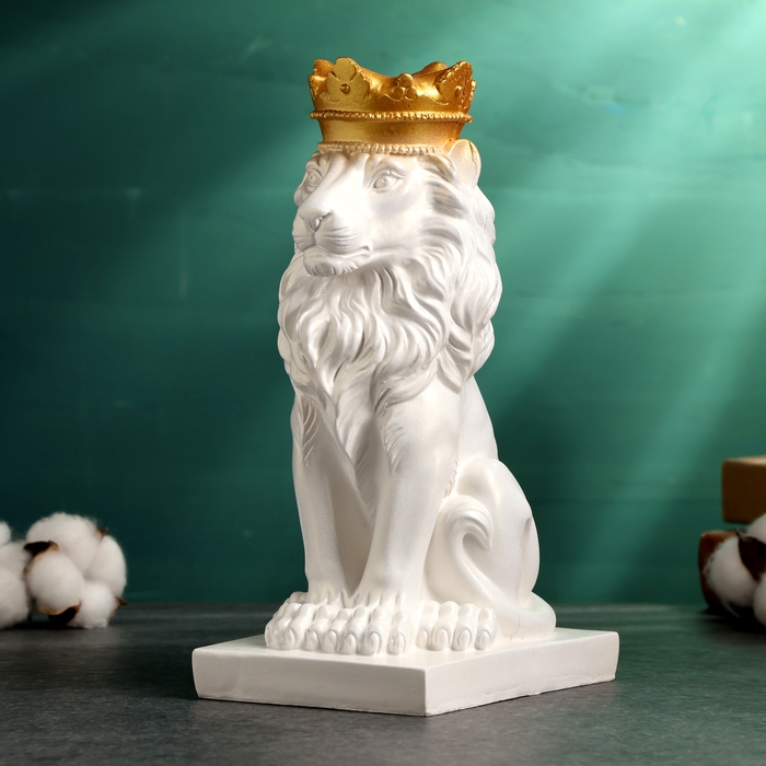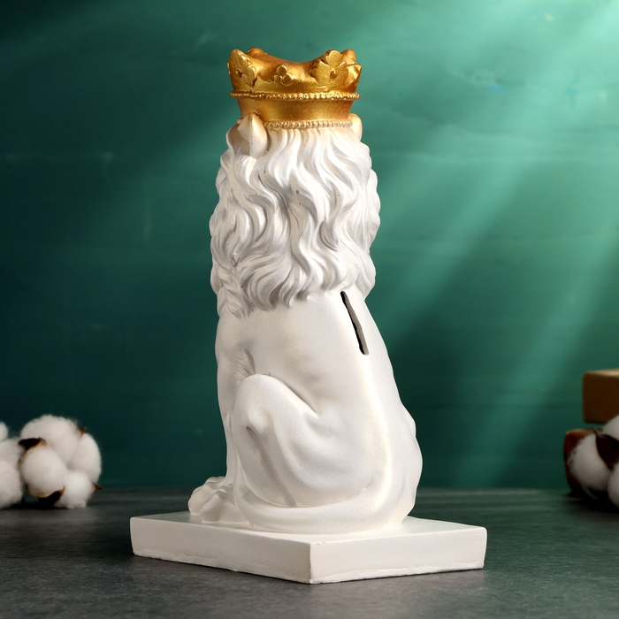 Копилка "Лев с короной" белый с золотой короной, 23см