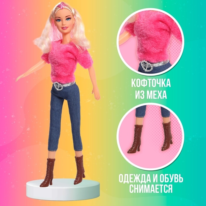 Кукла-модель «Подружка» станет замечательным подарком для детей. Она изготовлена из качественных материалов: пластика и текстиля, что гарантирует долговечность и безопасность. Высота игрушки составляет 42 см, что делает её идеальной для игр и создания модных образов.