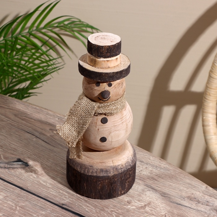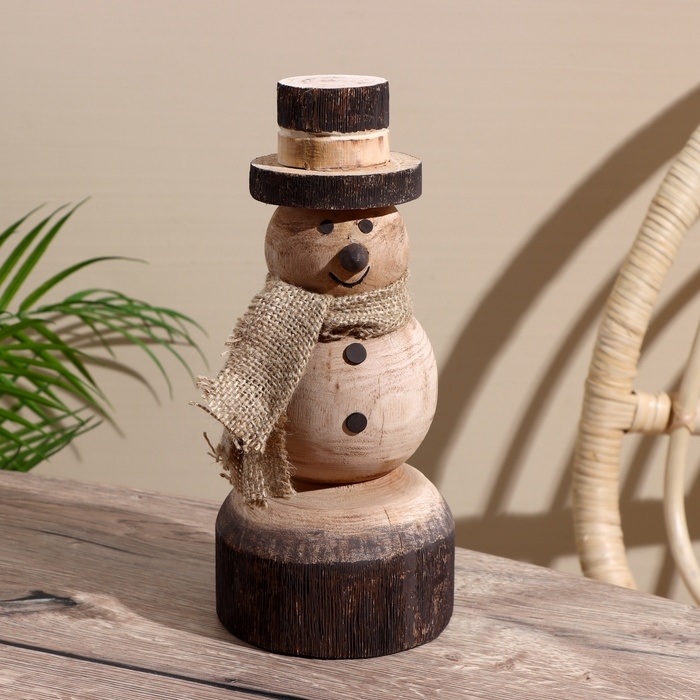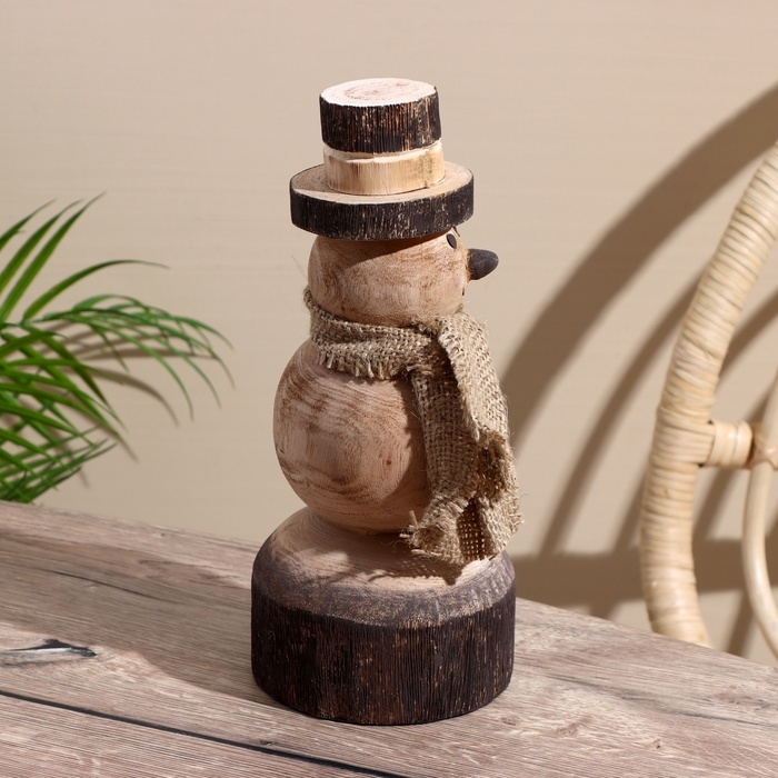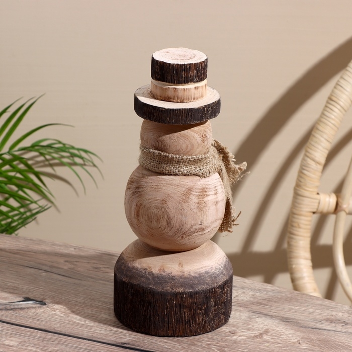 Сувенир новогодний "Снеговик" манговое дерево 11,5х11,5х25,5 см