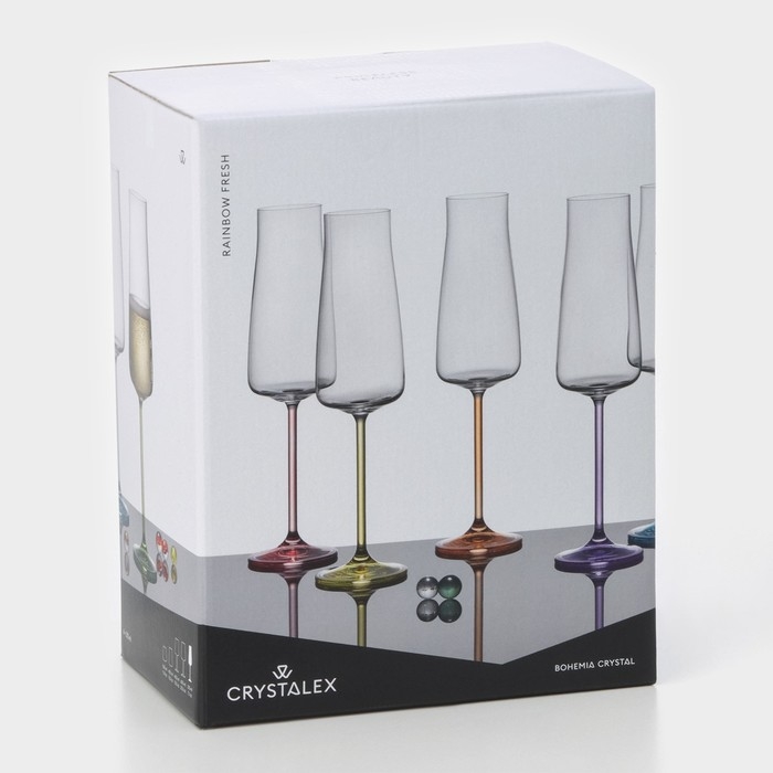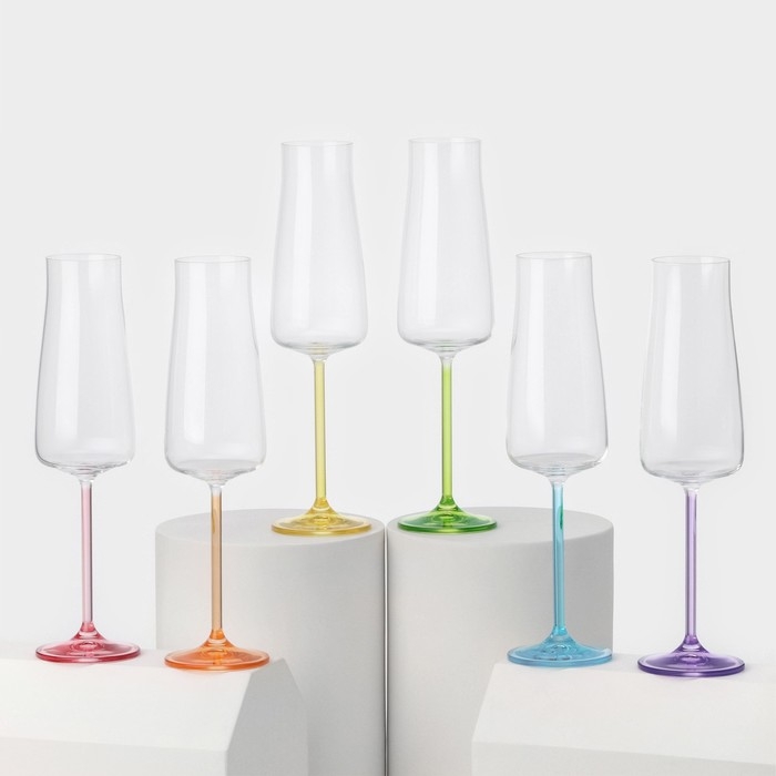 Набор стеклянных бокалов для шампанского RAINBOW FRESH, 210 мл, декор, 6 шт