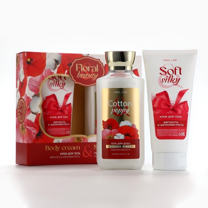 Подарочный набор косметики Cotton poppy, гель для душа 295 мл и крем для тела 200 мл, FLORAL & BEAUTY by URAL LAB