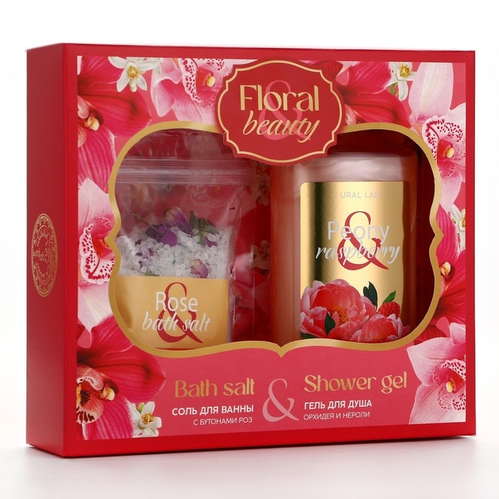 Подарочный набор косметики Peony raspberry, гель для душа 295 мл и соль для ванны с бутонами роз 150 г, FLORAL & BEAUTY by URAL LAB