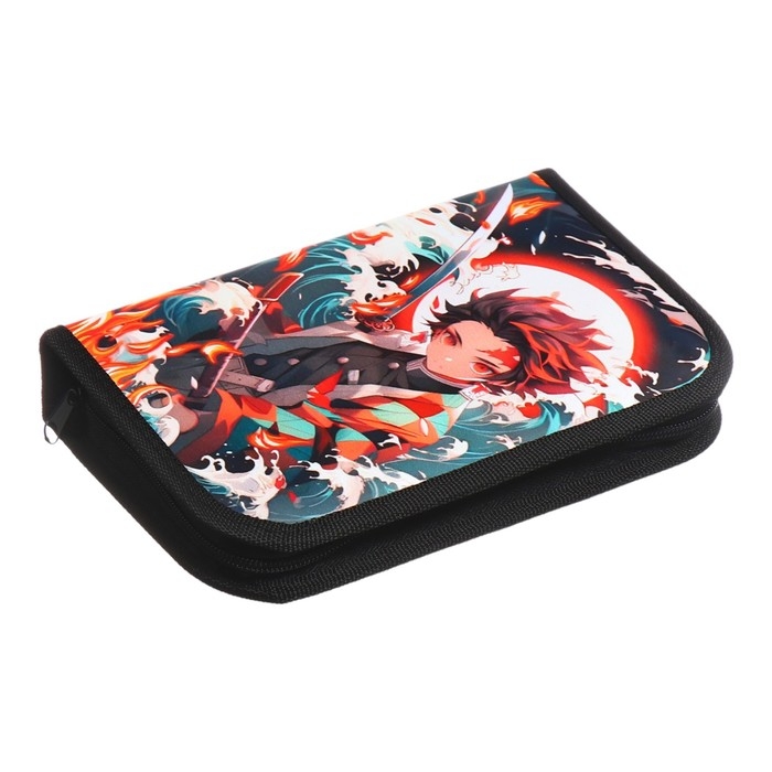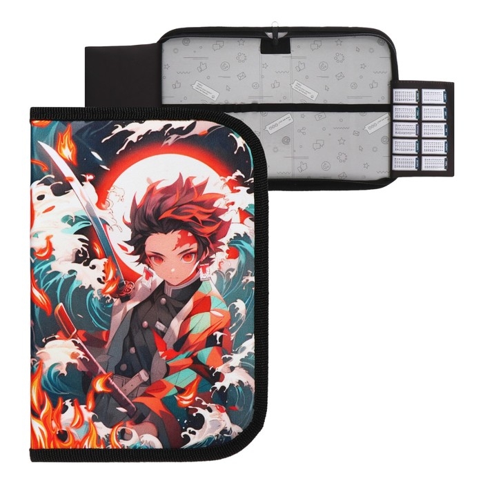 Пенал 1 секция 140 х 210 х 40 мм, откидной карман и косметичка, тканевый, Calligrata TOP Content "Аниме огонь"