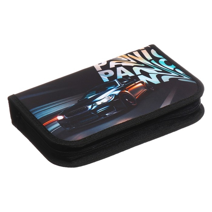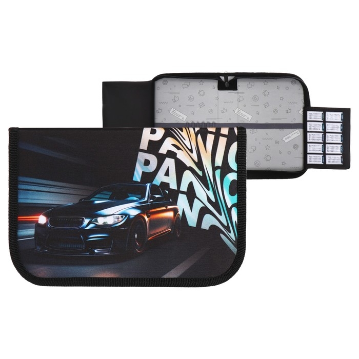 Пенал 1 секция 140 х 210 х 40 мм, откидной карман и косметичка, тканевый, Calligrata TOP Content "Тачка panic"
