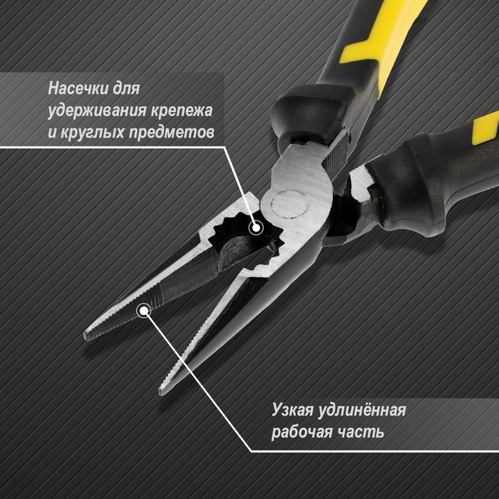 Длинногубцы усиленные ТУНДРА ПРОФИ, CrV, двухкомпонентные рукоятки, 190 мм