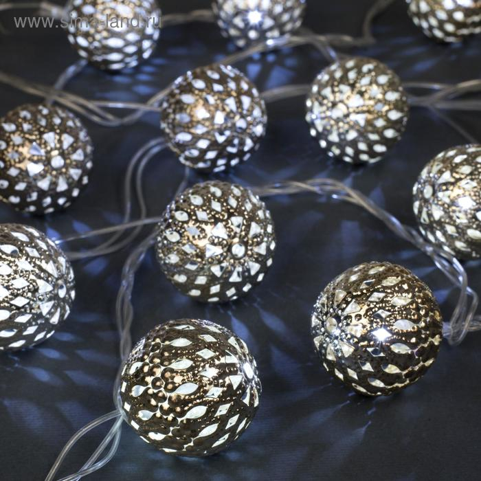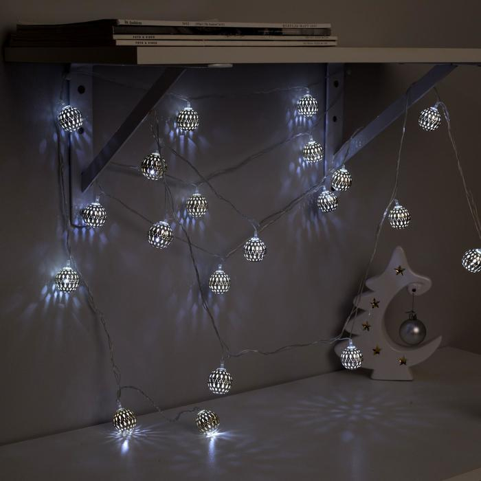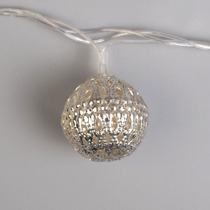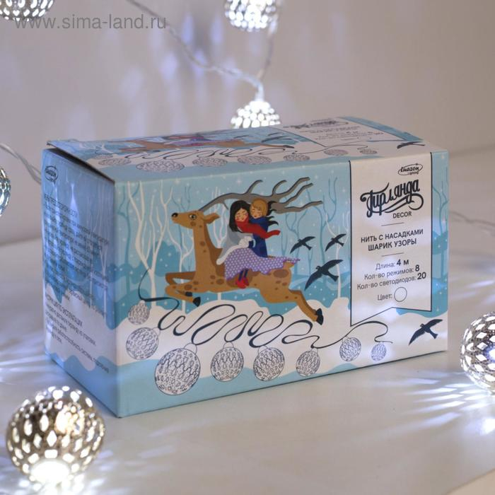Гирлянда «Нить» 4 м с насадками «Шарик с узором», IP20, прозрачная нить, 20 LED, свечение белое, 8 режимов, 220 В