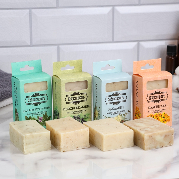 Натуральное мыло "Эвкалипт, Календула, Можжевельник, Шалфей" набор 4 шт по 100 г