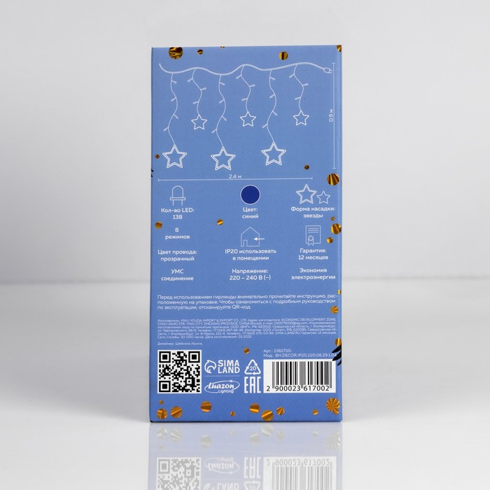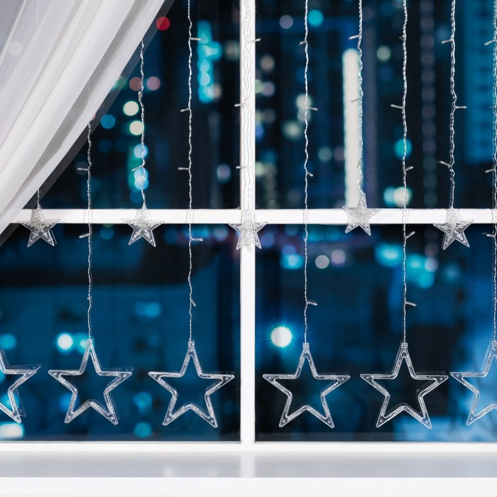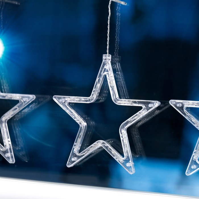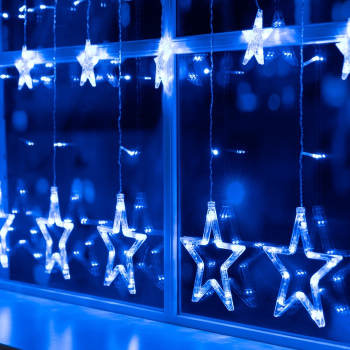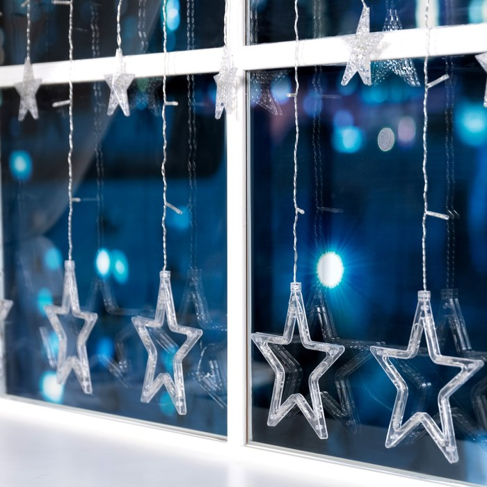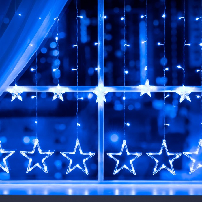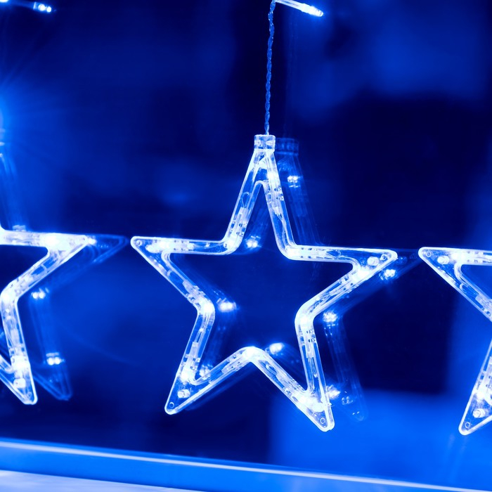 Гирлянда «Бахрома» 2.4 × 0.9 м с насадками «Звёзды», IP20, прозрачная нить, 138 LED, свечение синее, 8 режимов, 220 В