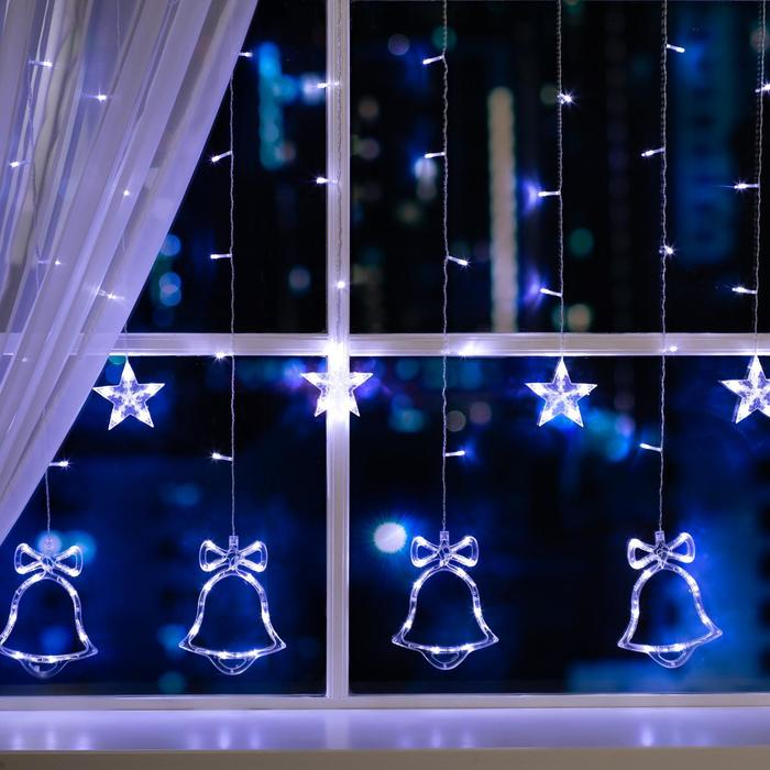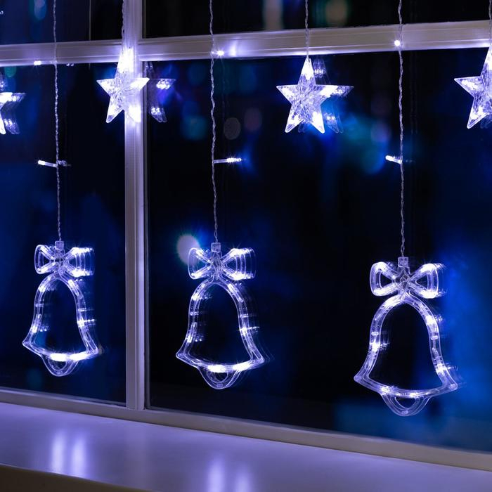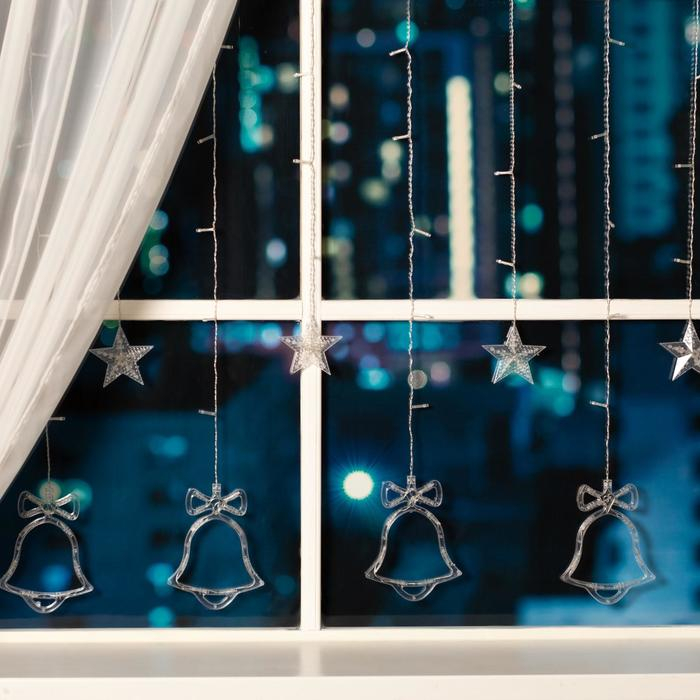 Гирлянда «Бахрома» 2.4 × 0.9 м с насадками «Колокольчики», IP20, прозрачная нить, 138 LED, свечение белое, 8 режимов, 220 В