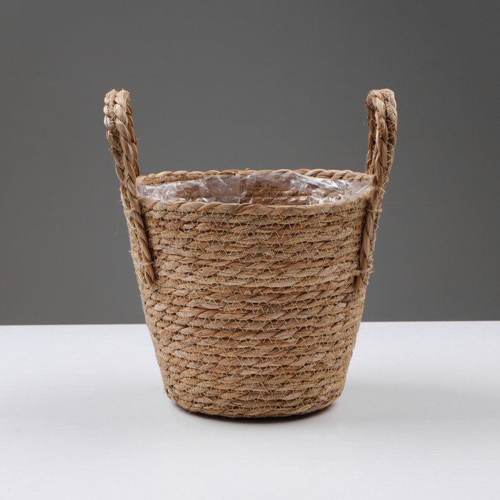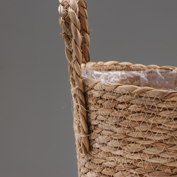 Кашпо плетеное "Сафари" с ручками, 21,5х21,5х18,8 см, натуральный