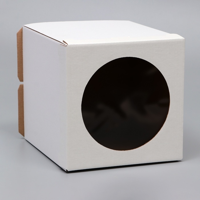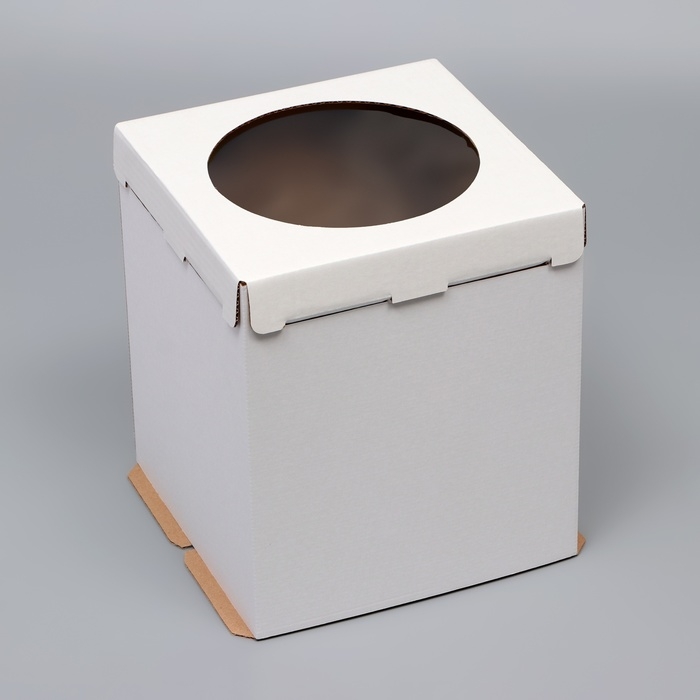 Коробка под торт, белая, с окном, 18 х 18 х 22 см