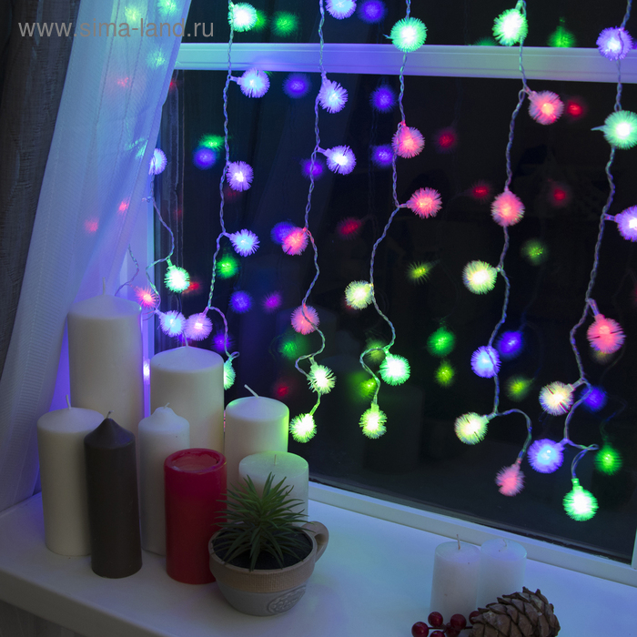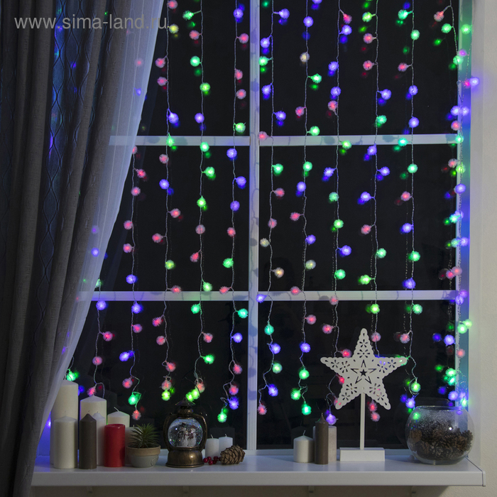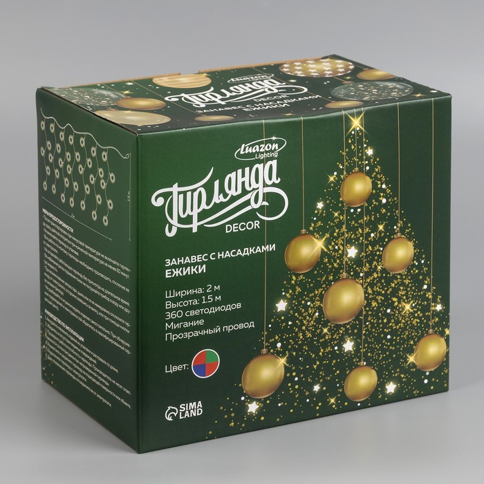 Гирлянда «Занавес» 2 × 1.5 м с насадками «Ёжики», IP20, прозрачная нить, 360 LED, свечение мульти (RG/RB), мигание, 220 В