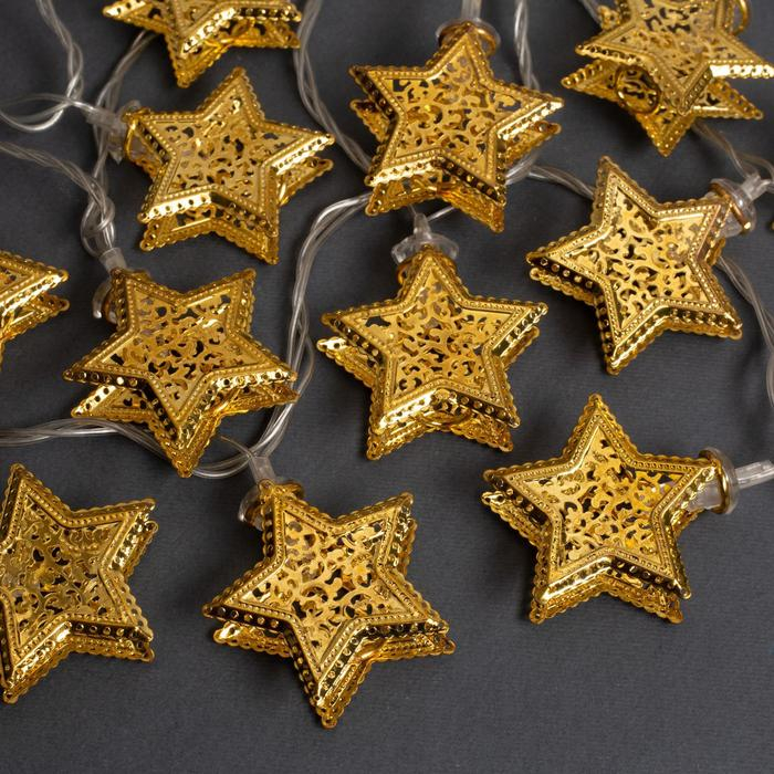 Гирлянда «Нить» 4 м с насадками «Звёздочка», IP20, прозрачная нить, 20 LED, свечение тёплое белое, 8 режимов, 220 В