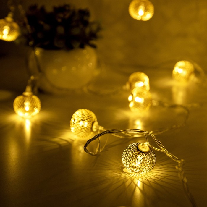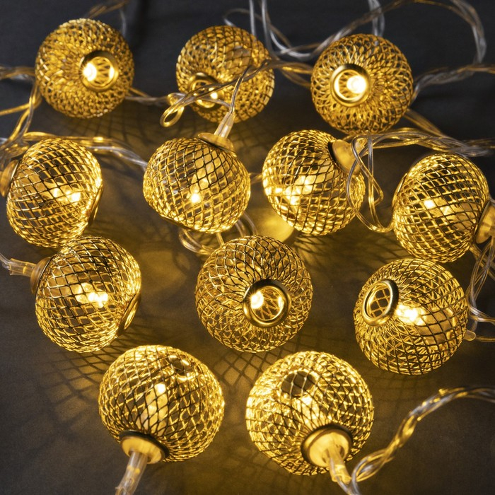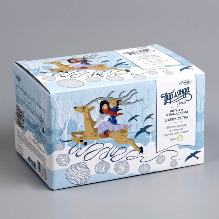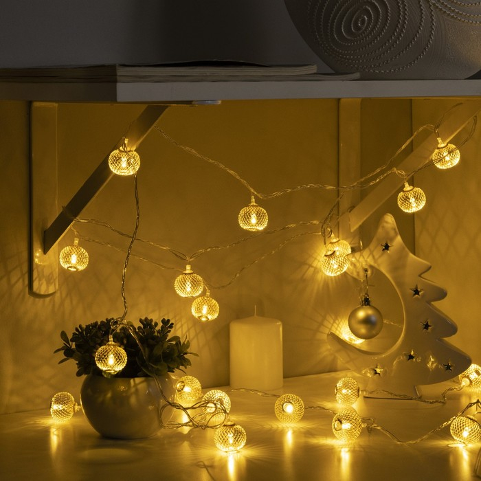 Гирлянда «Нить» 4 м с насадками «Шарик сетка», IP20, прозрачная нить, 20 LED, свечение тёплое белое, 8 режимов, 220 В