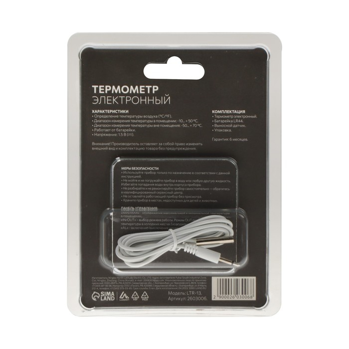 Термометр LTR-13, электронный, выносной датчик 90 см, белый