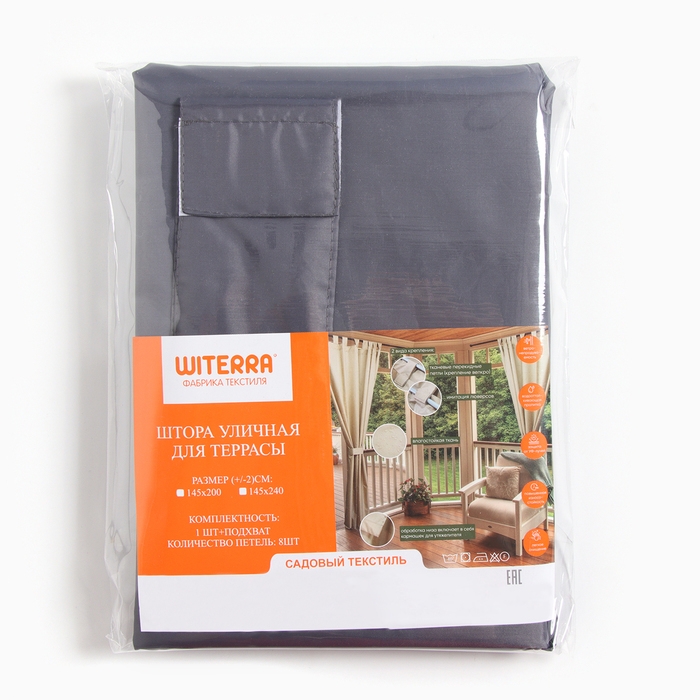 Штора уличная Witerra на петлях 210D, 145x200см, серый, пэ 100%