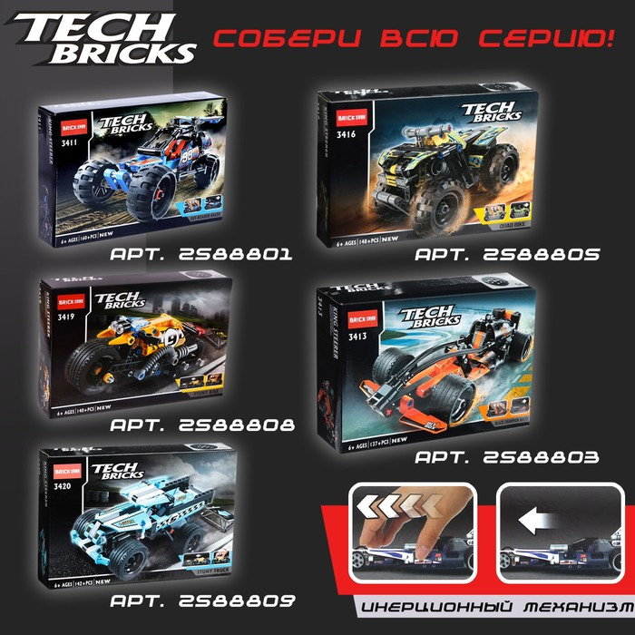 Конструктор с инерционным механизмом «Спорткар», 158 деталей