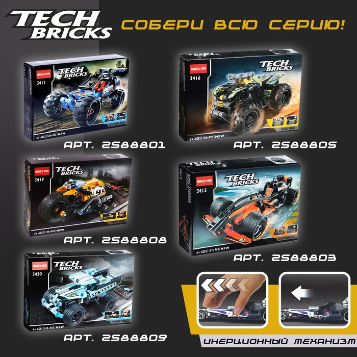 Конструктор с инерционным механизмом «Спорткар», 137 деталей