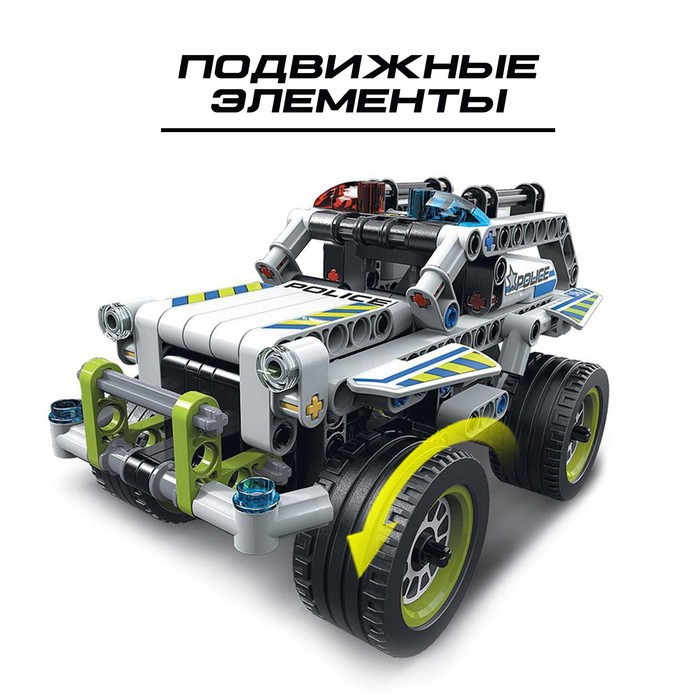 Конструктор полицейский внедорожник UNICON Техно, инерционный, 185 деталей, 6+