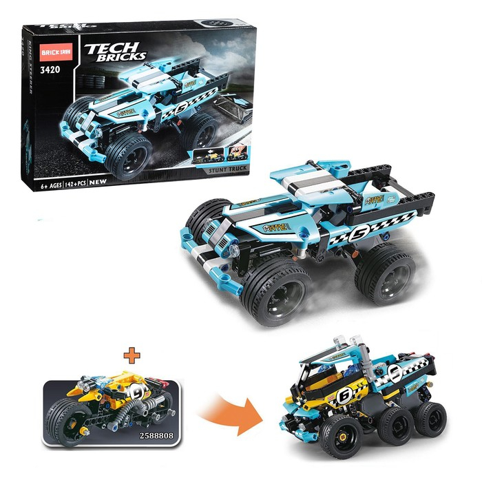 Конструктор с инерционным механизмом «Трюковый джип», 142 детали
