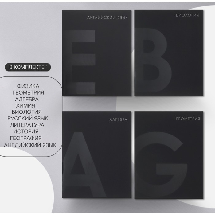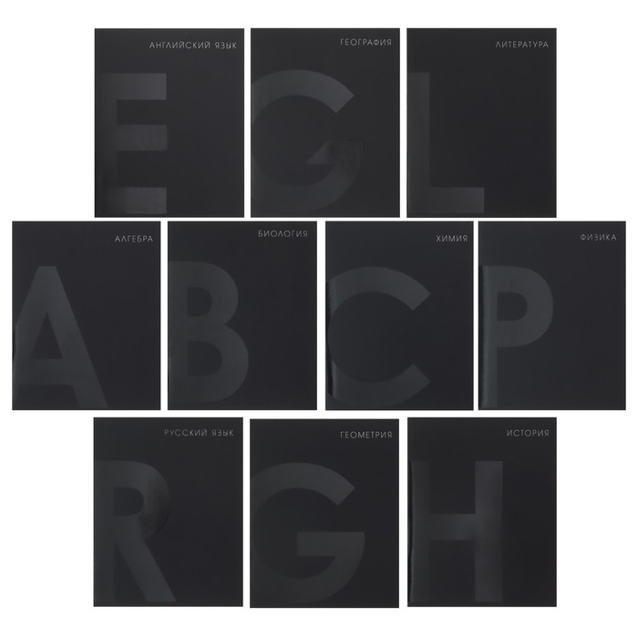Комплект предметных тетрадей 48 листов 10 предметов "BlackTone" Calligrata TOP, со справочным материалом, обложка мелованный картон, Soft-touch + выборочный лак, блок офсет