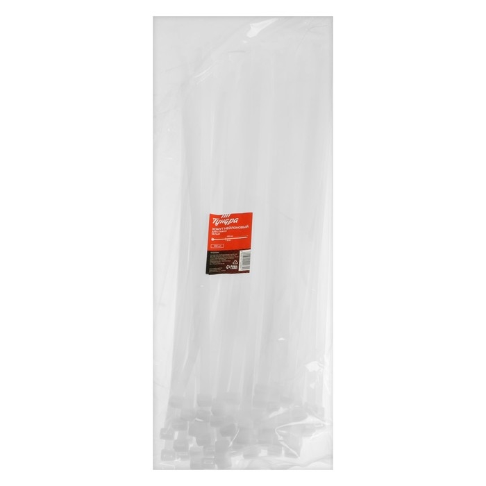 Хомут нейлоновый ТУНДРА krep для стяжки, 9х450 мм, белый, в упаковке 100 шт.