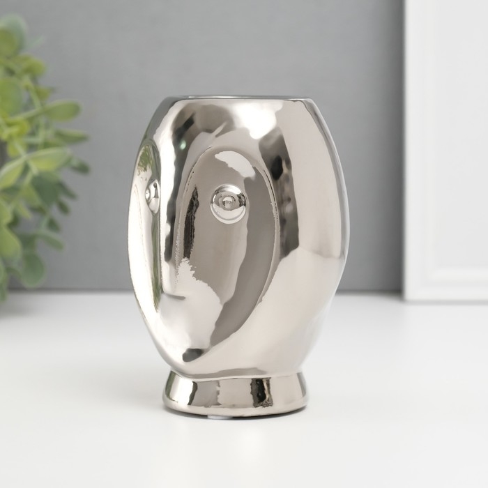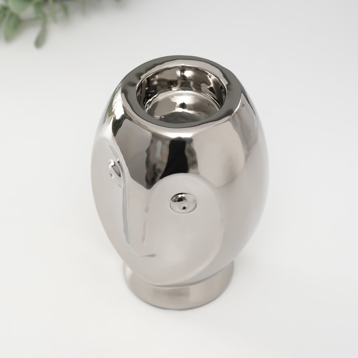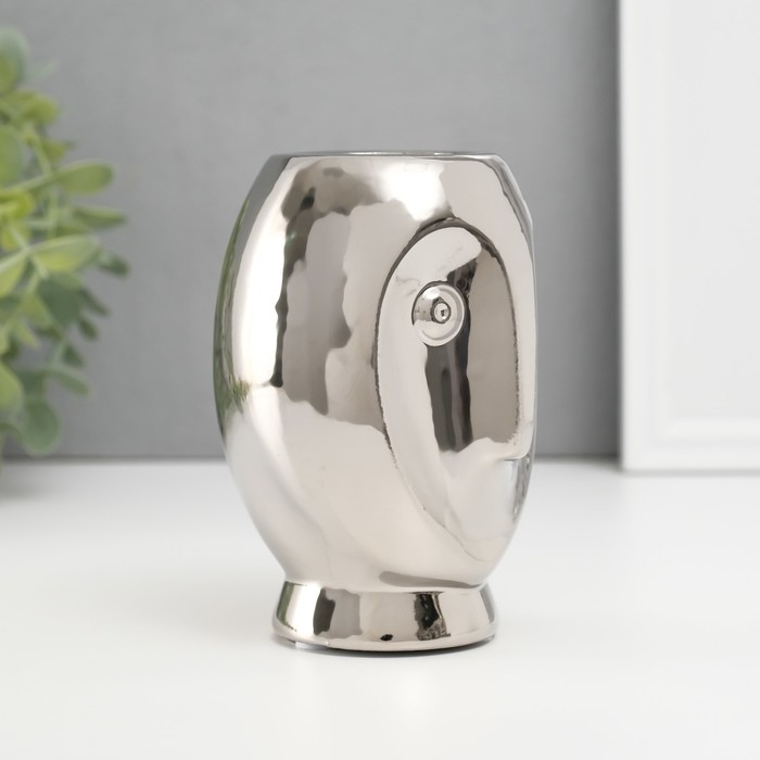 Подсвечник керамика на 1 свечу "Сова Сипуха" d=3,5 серебро 9х8,5х12,5 см