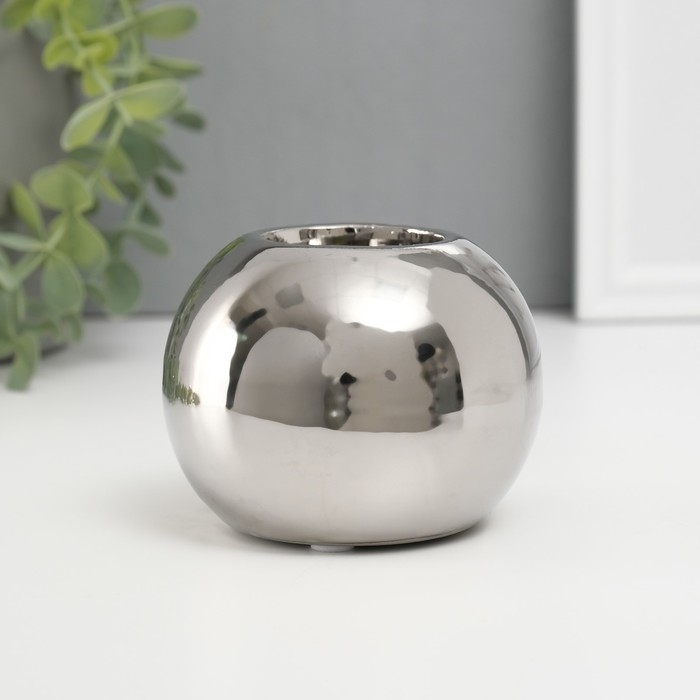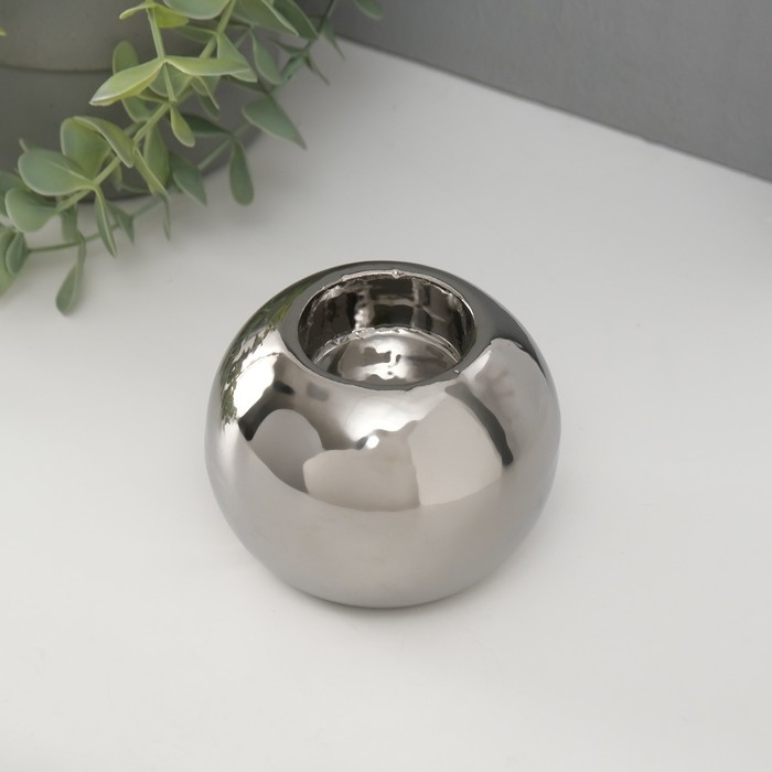 Подсвечник керамика на 1 свечу "Шар" d=3,5 см серебро 9,5х9,5х6,5 см