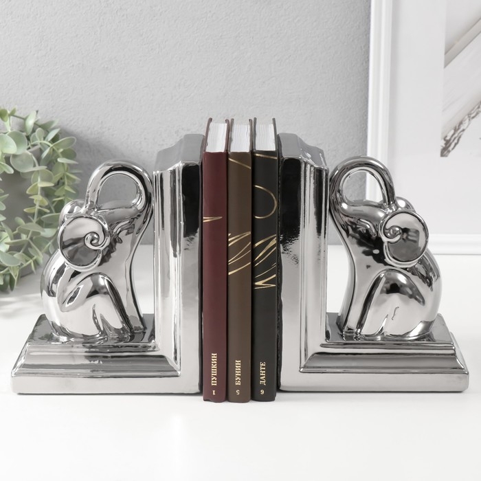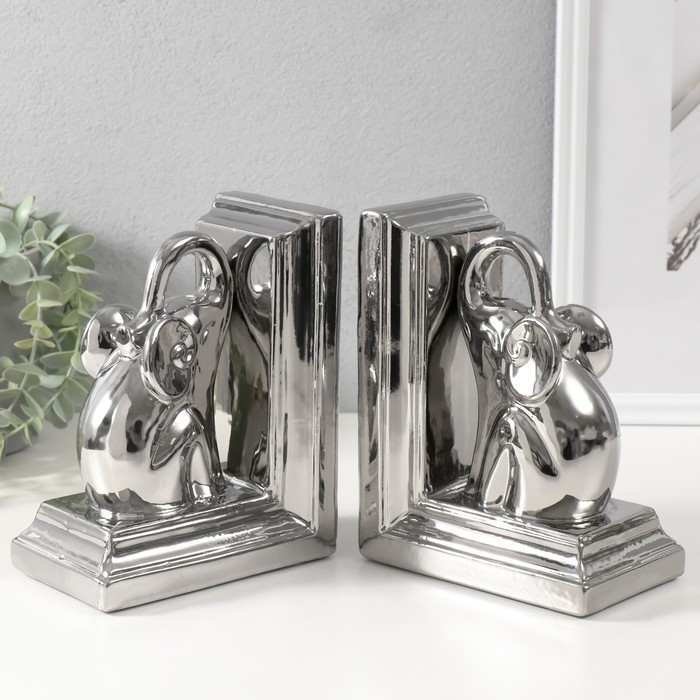 Держатели для книг керамика "Слоны" набор 2 шт серебро 14,5х9х18 см