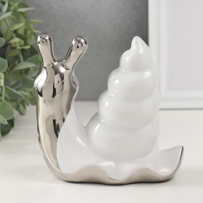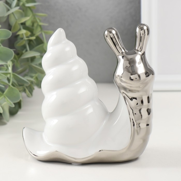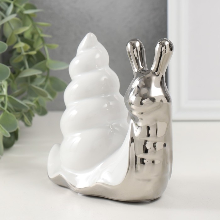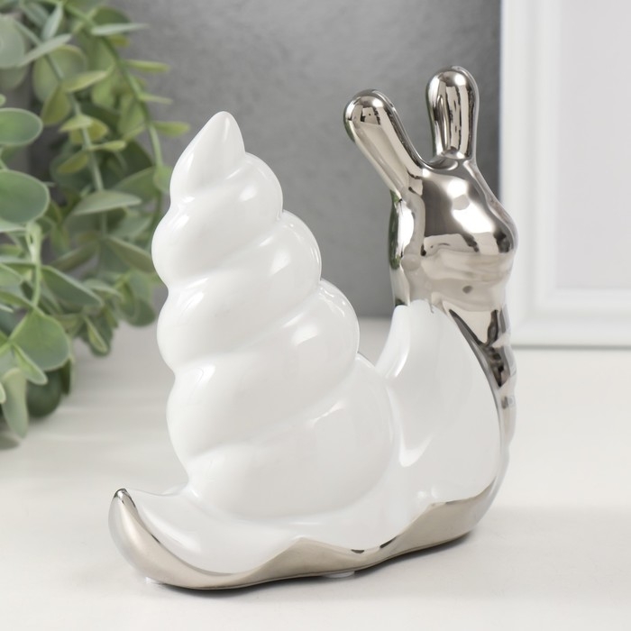 Сувенир керамика "Улитка" серебро с белым 13,5х6,5х13,5 см