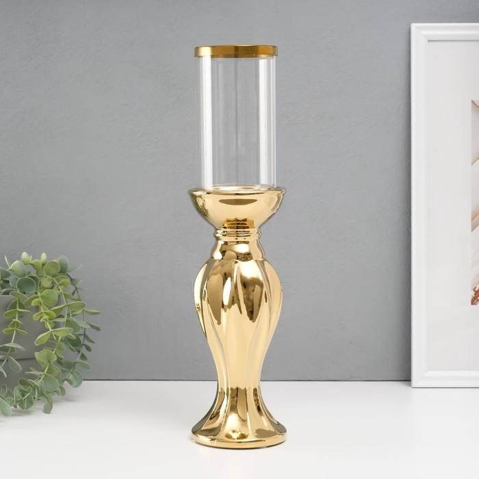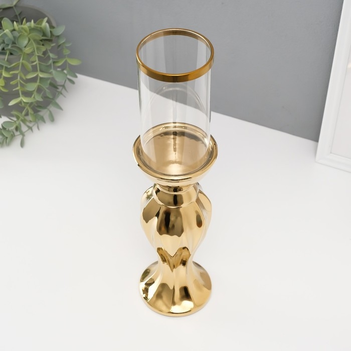 Подсвечник керамика, стекло на 1 свечу "Версаль" d=7,5 см золото 9,5х9,5х38,5 см