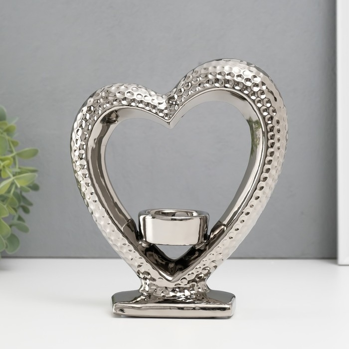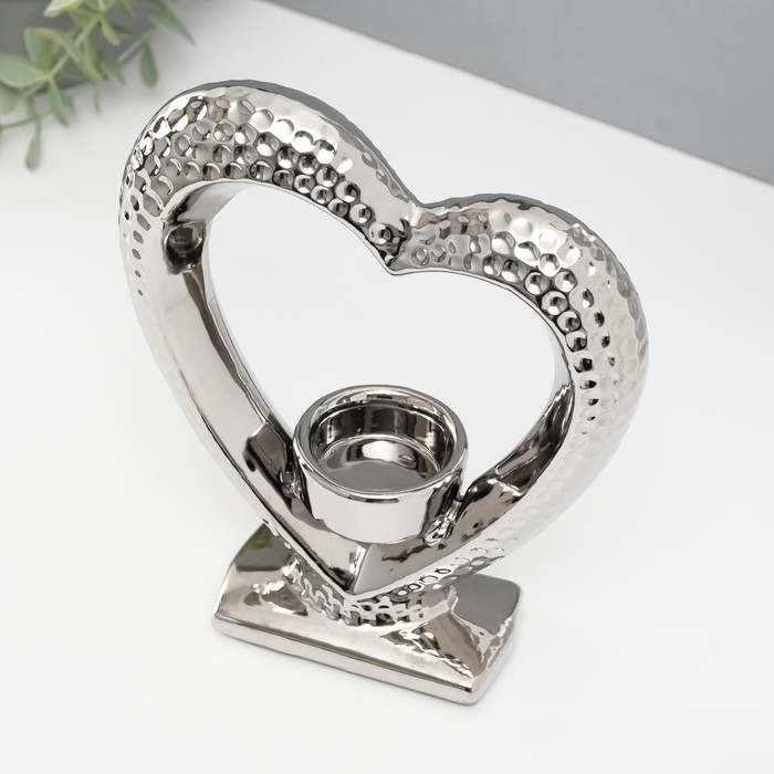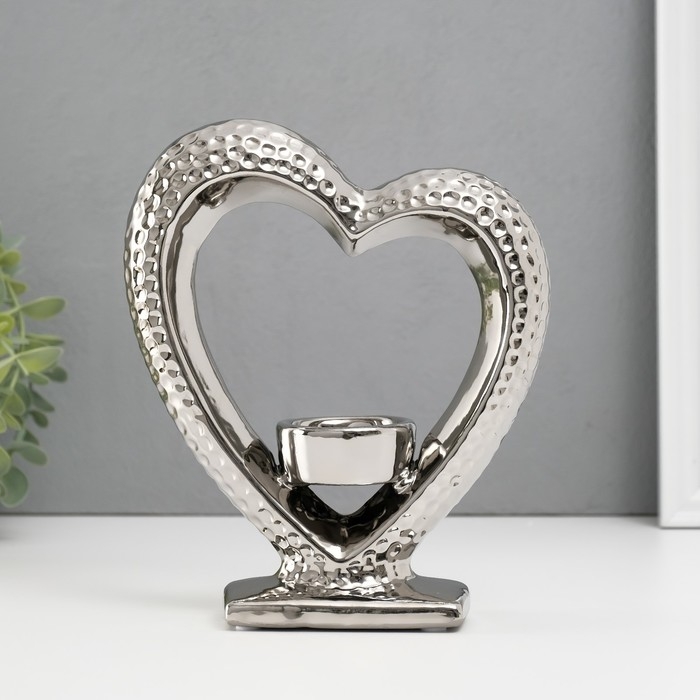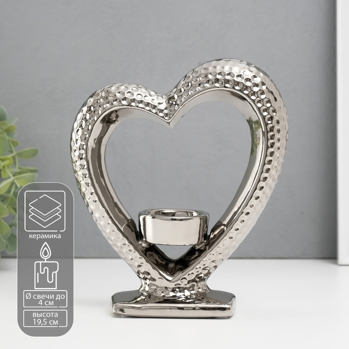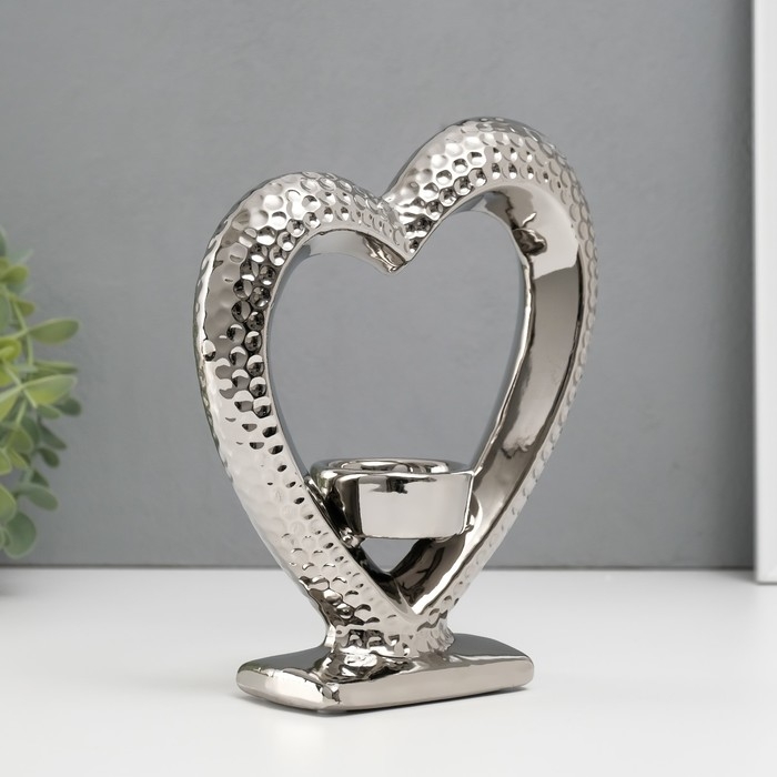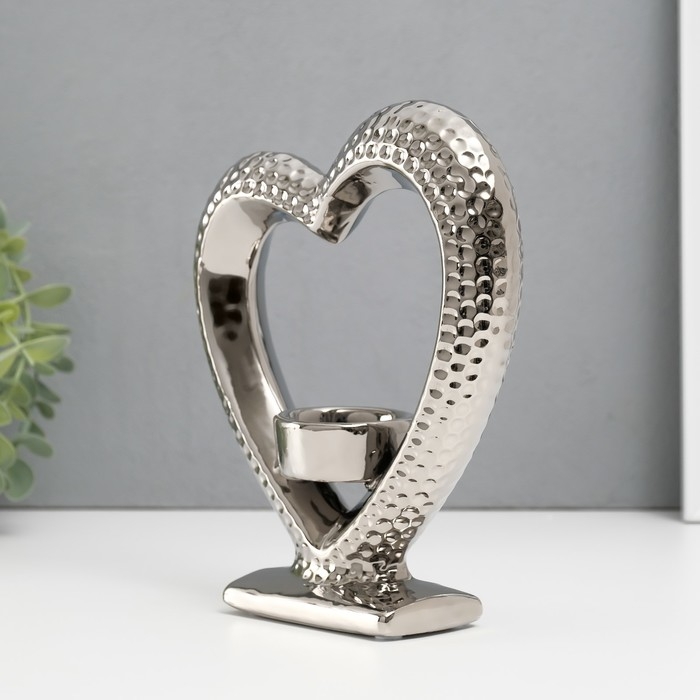 Подсвечник керамика на 1 свечу "Сердце на подставке" d=4 см серебро 17х5,5х19,5 см