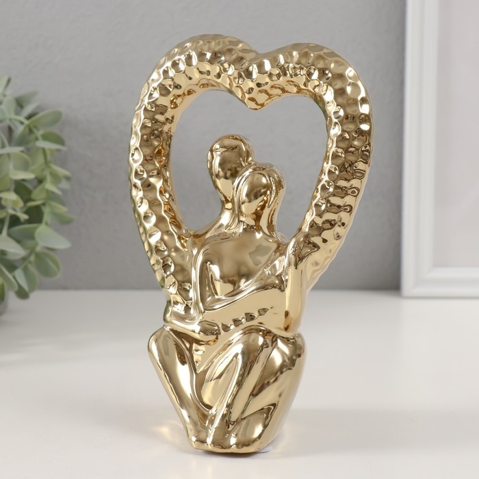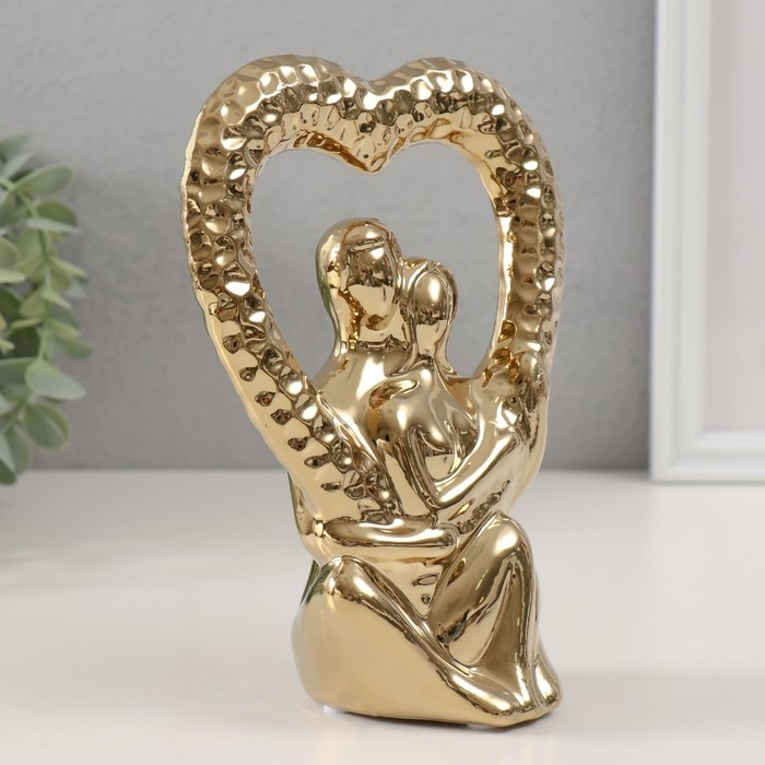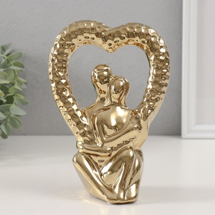Сувенир керамика "Абстракция. Влюблённые с сердцем" золото 13х7х18,5 см