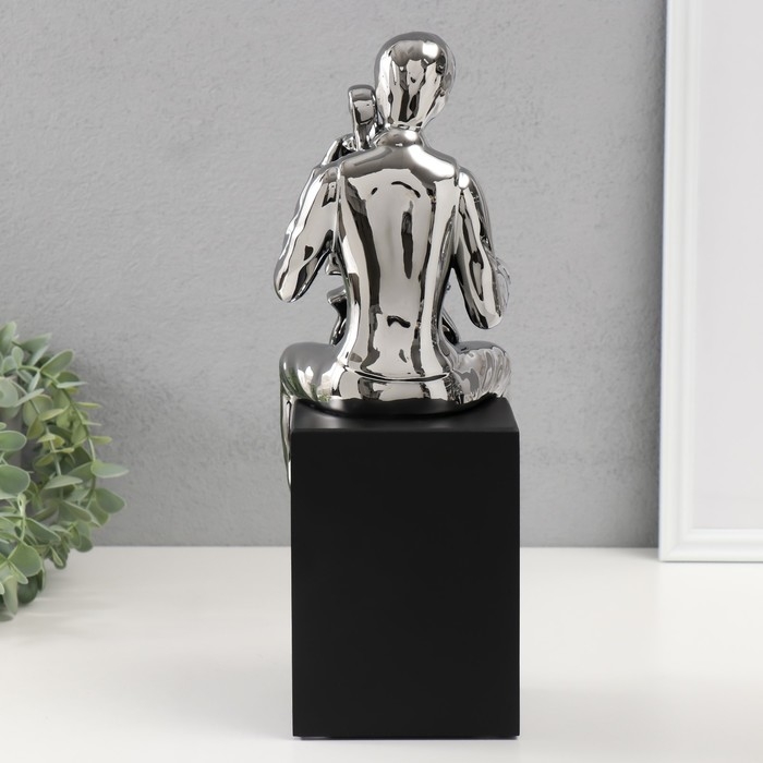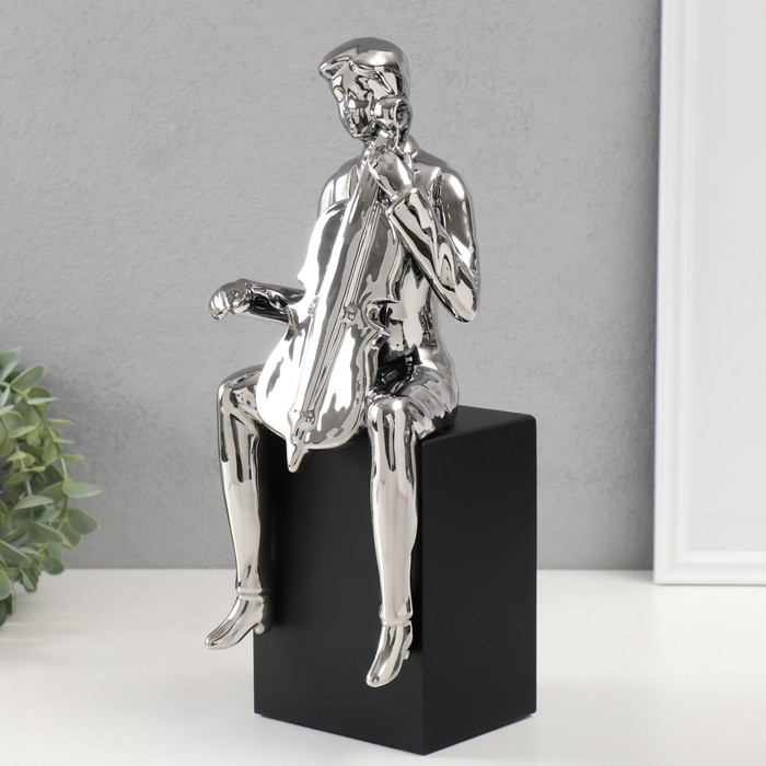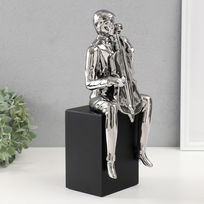 Сувенир керамика "Мальчик с виолончелью" серебро 11,5х12х34 см