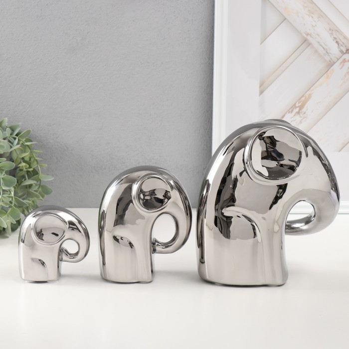 Сувенир керамика "Семья" серебро, набор 3 шт 11х16,5х19 см, 11,5х6х13,5 см, 4,5х7,5х8 см