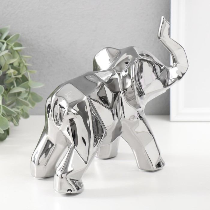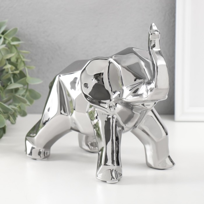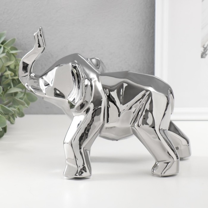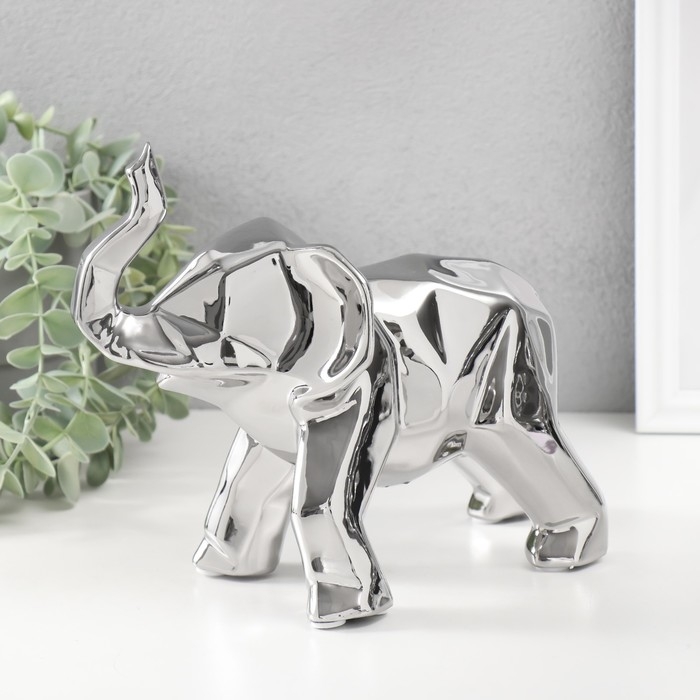 Сувенир керамика "Геометрия. Слон" серебро 11х26х18 см