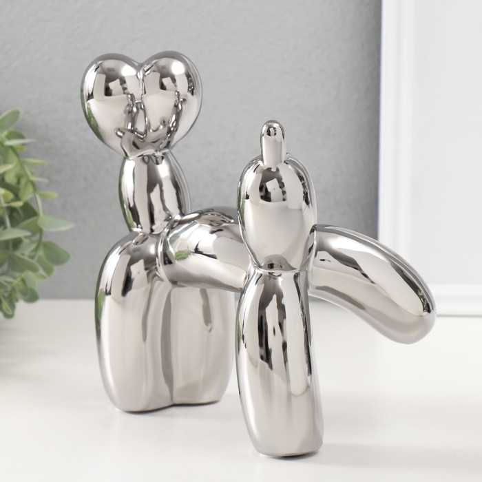 Сувенир керамика "Воздушный шарик - писающая собачка" серебро 10,5х23х20 см
