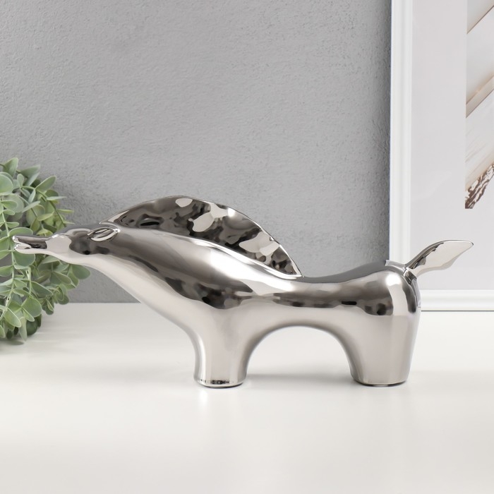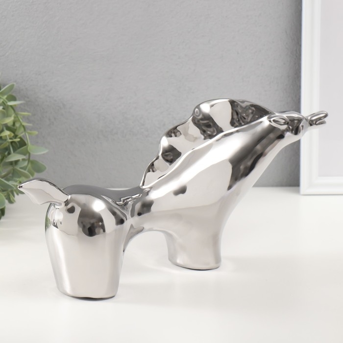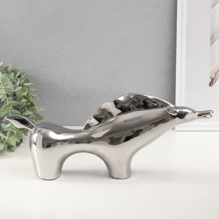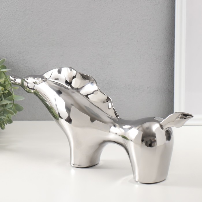 Сувенир керамика "Целеустремленный конь" серебро 7х39,5х17 см