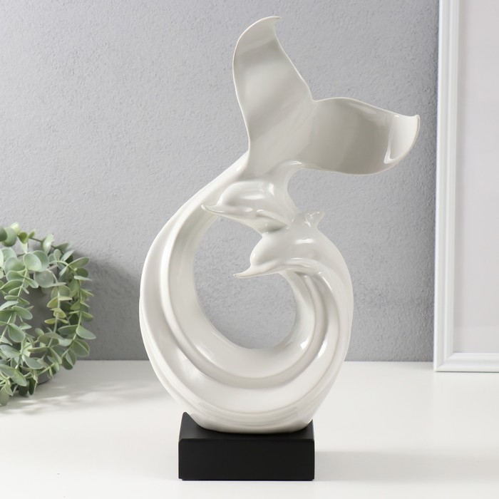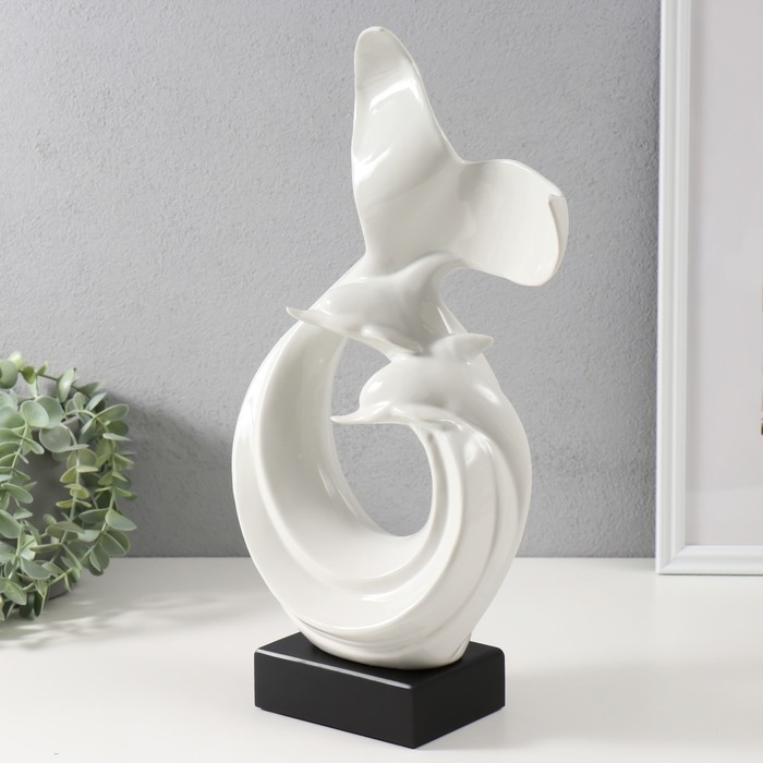 Сувенир керамика "Абстракция. Морские дельфины" белый 9х18х40 см