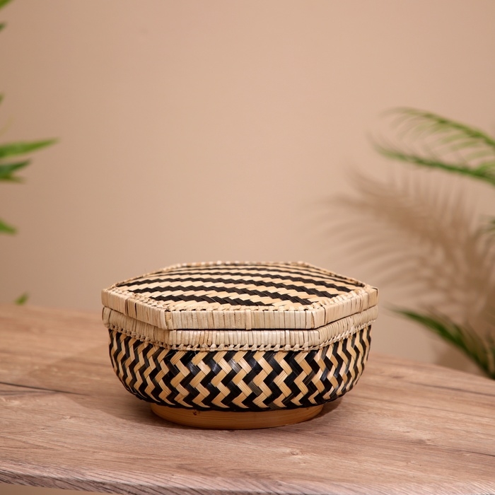 Шкатулка с крышкой плетёная, из бамбука 25х20х12 см