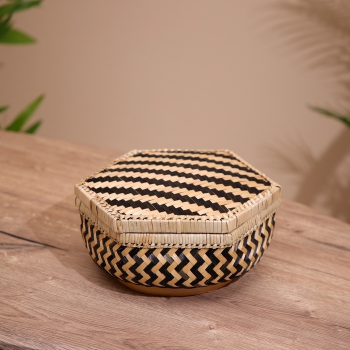 Шкатулка с крышкой плетёная, из бамбука 20х20х11 см
