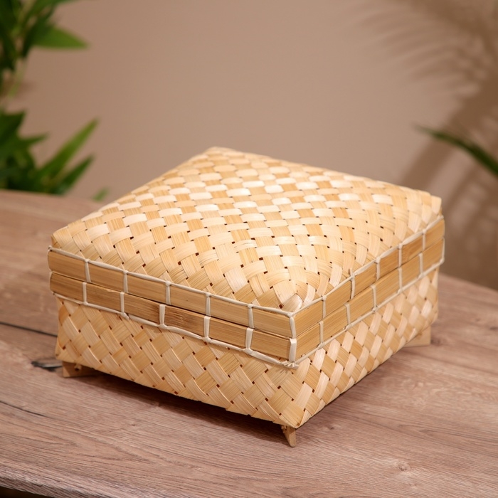 Шкатулка с крышкой плетёная, из бамбука 20х20х11 см