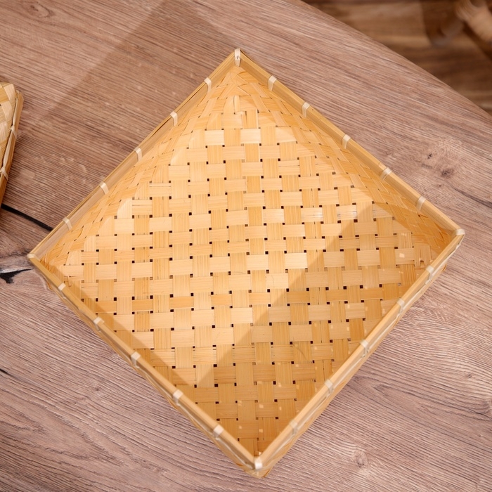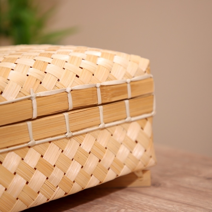 Шкатулка с крышкой плетёная, из бамбука 25х25х15 см