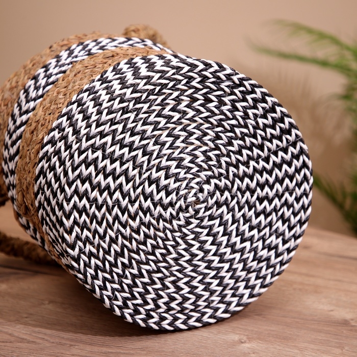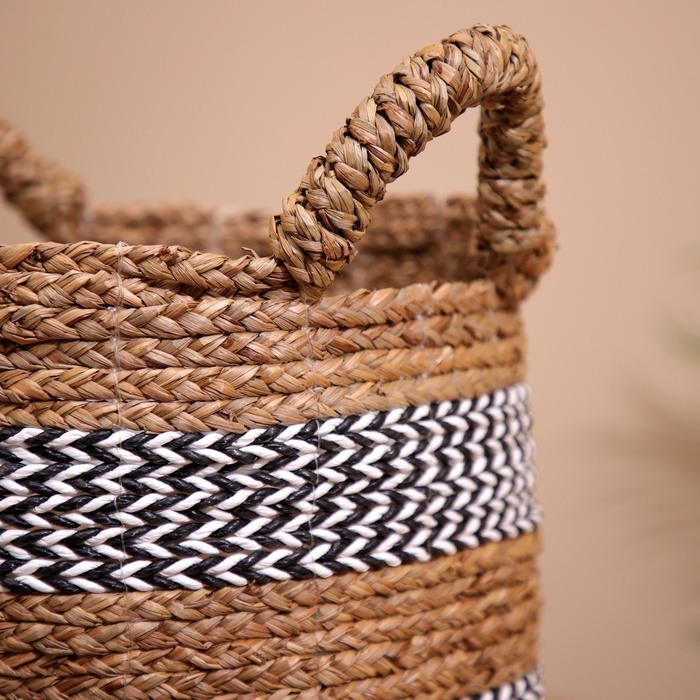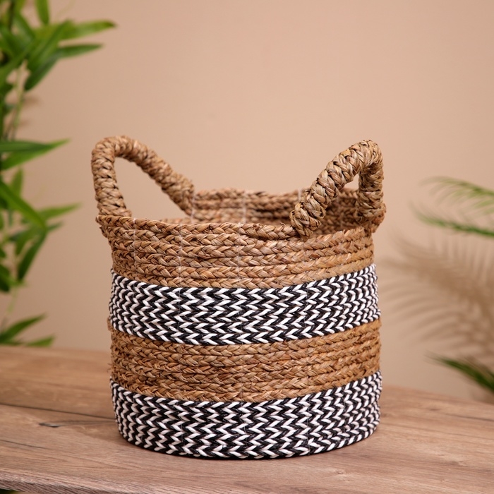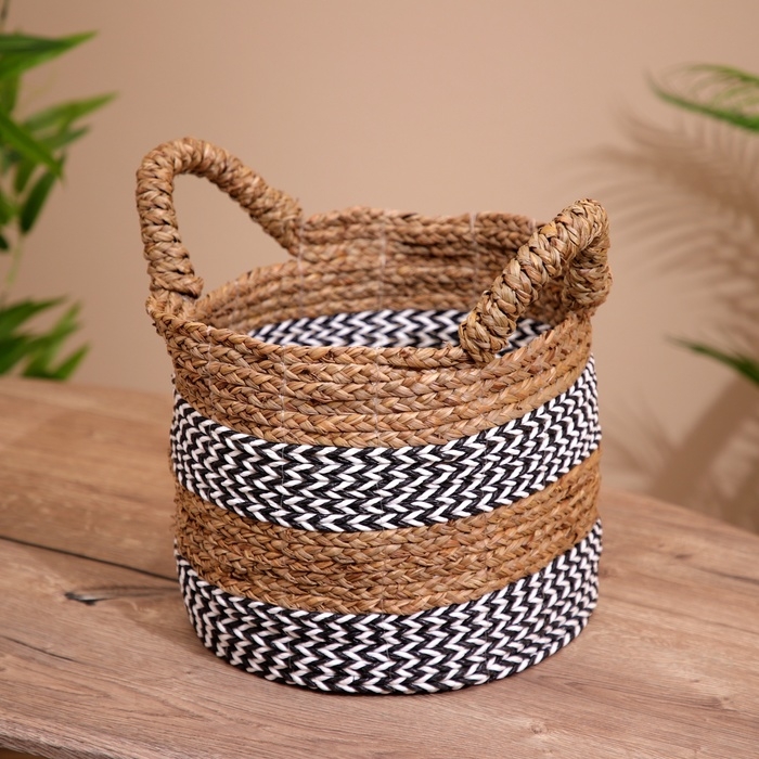 Плетёная корзинка сделана из экоматериала вручную, поэтому двух одинаковых экземпляров не найти.