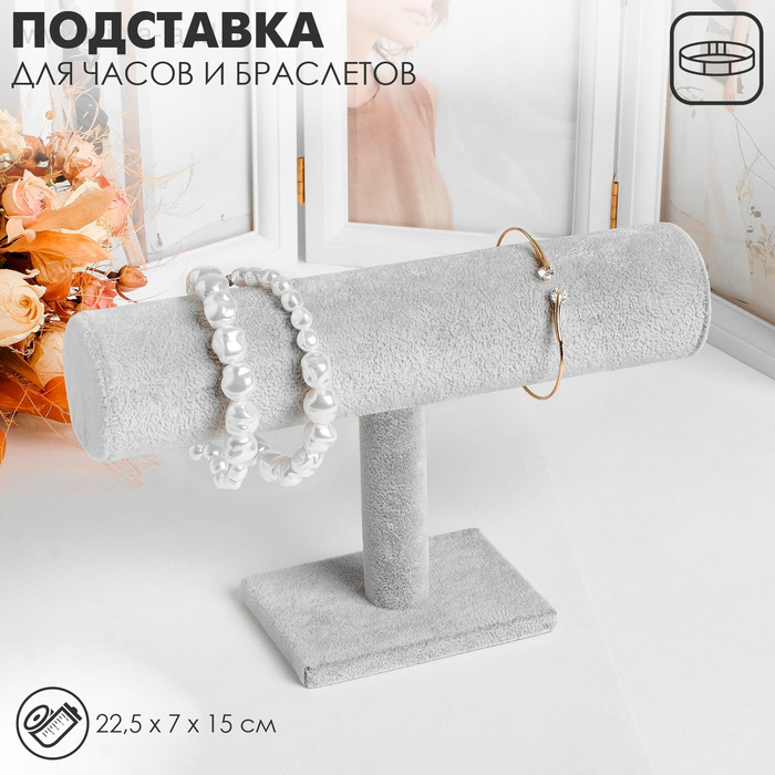 Подставка для часов, браслетов, цепочек, 22,5×7×15 см, d=5 см, цвет серый