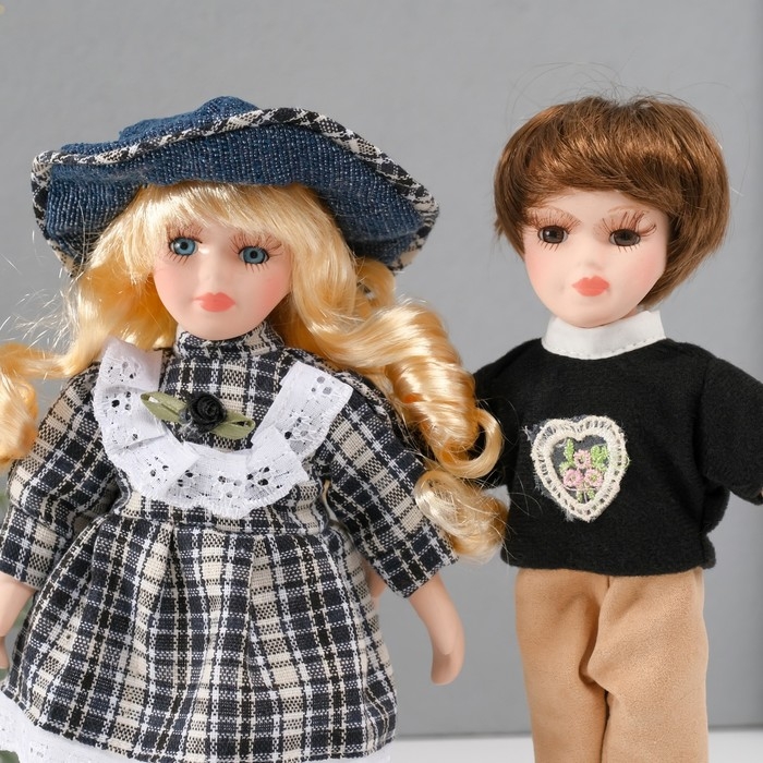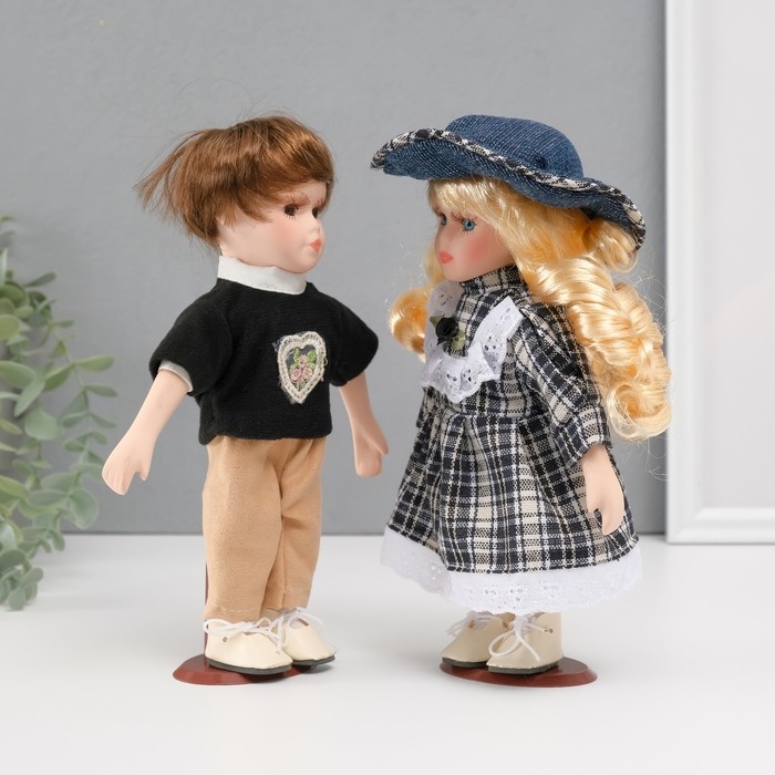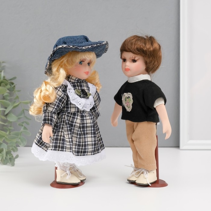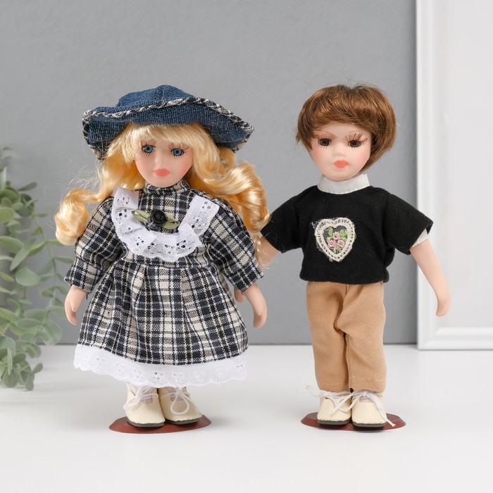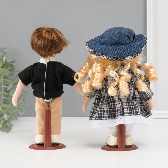 Кукла коллекционная парочка "Лена и Серёжа, клетчатый наряд" набор 2 шт 21 см