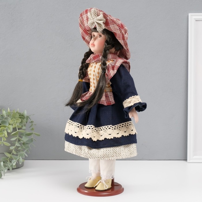 Кукла коллекционная керамика "Есения в бежевой жилетке и синей юбке" 39 см
