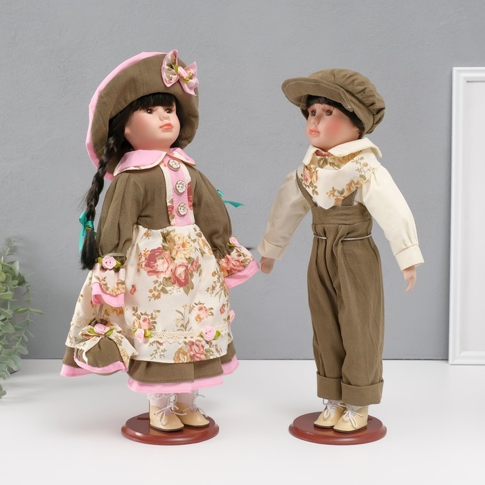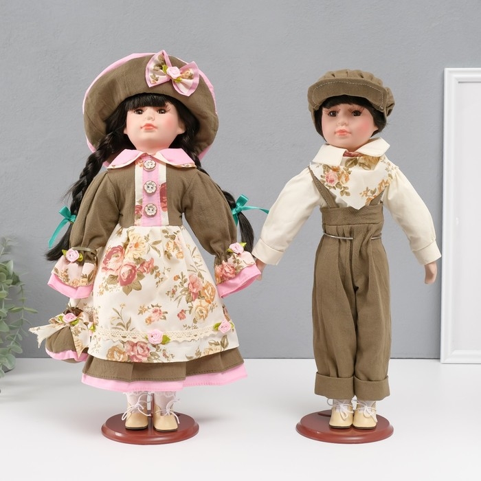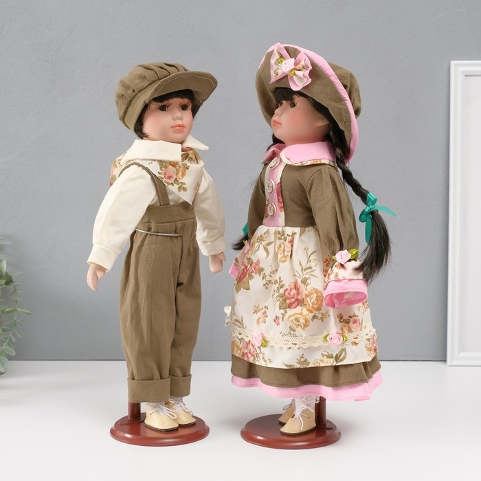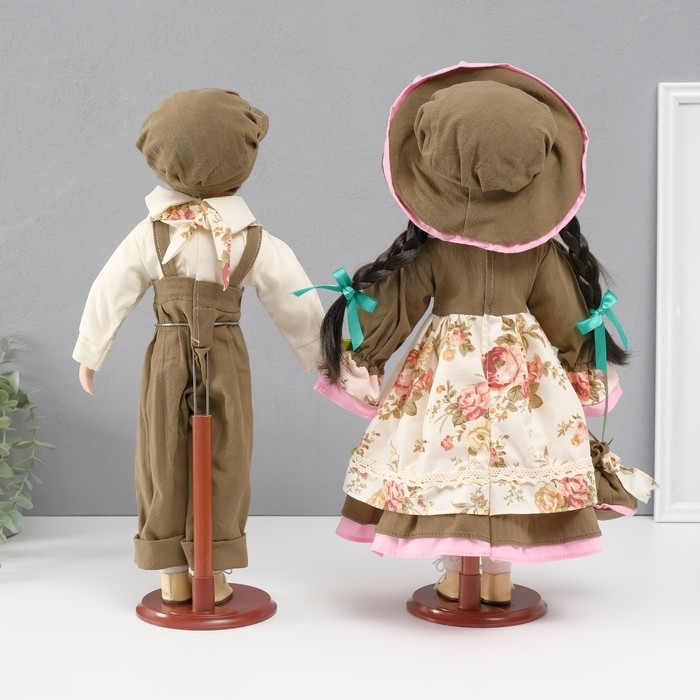 Кукла коллекционная парочка "Марина и Паша, зелёный наряд с цветами" набор 2 шт 40 см