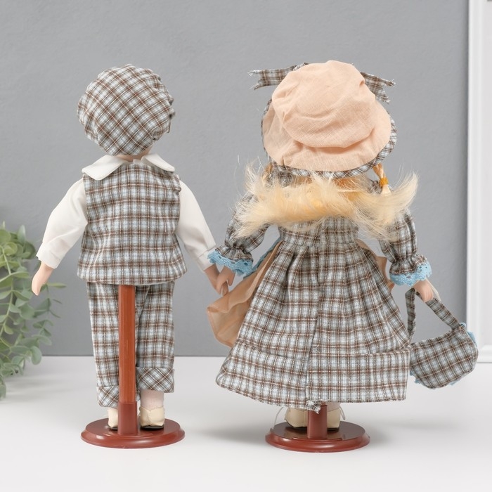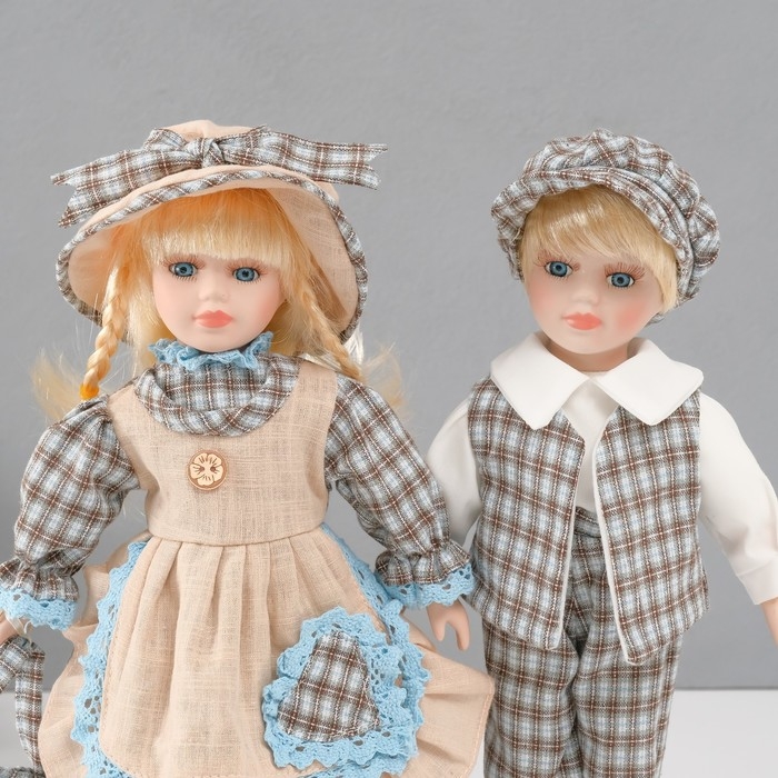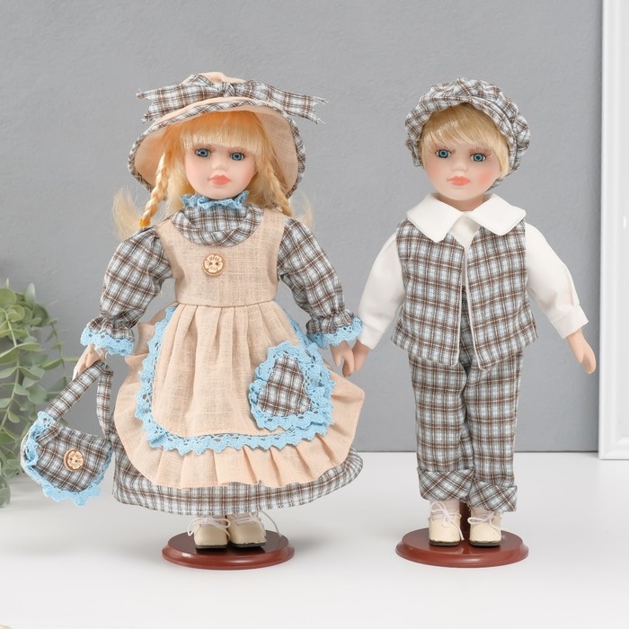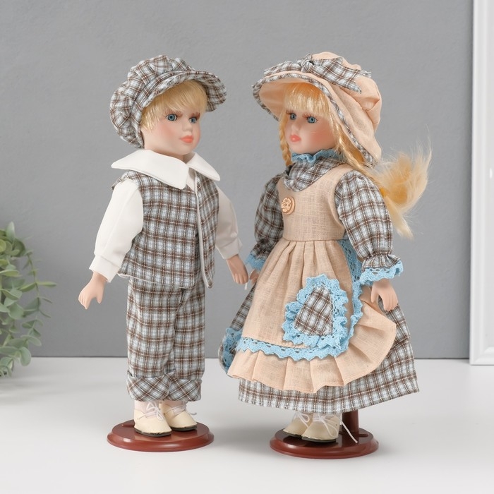 Кукла коллекционная парочка "Алёна и Антон, наряд в клеточку" набор 2 шт 30 см