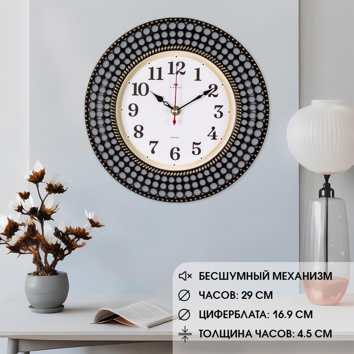 Бесшумные настенные часы - идеальное решение для создания стильного и уютного интерьера. Эти часы настоящая находка для тех, кто ценит качество и неповторимый дизайн. Настенные часы - это не только функциональный предмет, но и настоящий декоративный аксессуар. Они прекрасно впишутся в интерьер спальни или гостиной. Благодаря своему дизайну, они подчеркнут стиль и гармонию вашего дома.